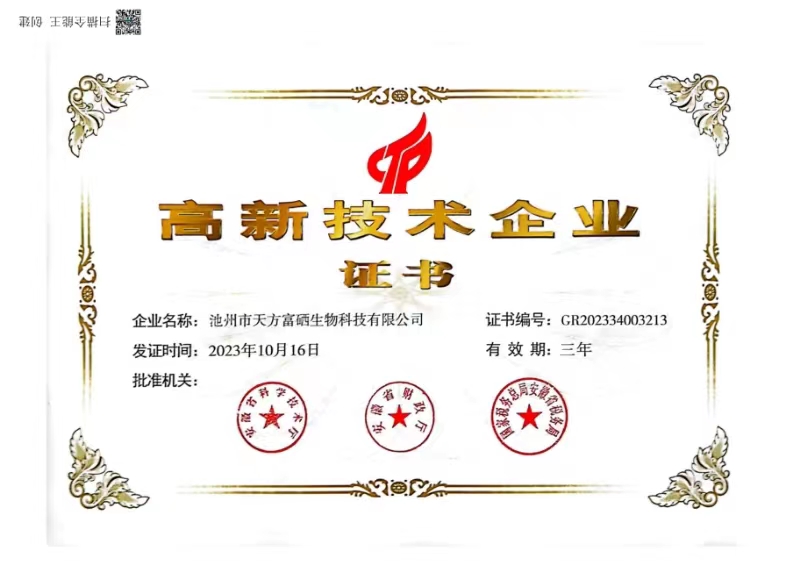 近日,池州市天方富硒生物科技有限公司正式通過高新技術(shù)企業(yè)認(rèn)定,榮獲由安徽省科學(xué)技術(shù)廳、安徽省財政廳、國家稅務(wù)總局、安徽...
